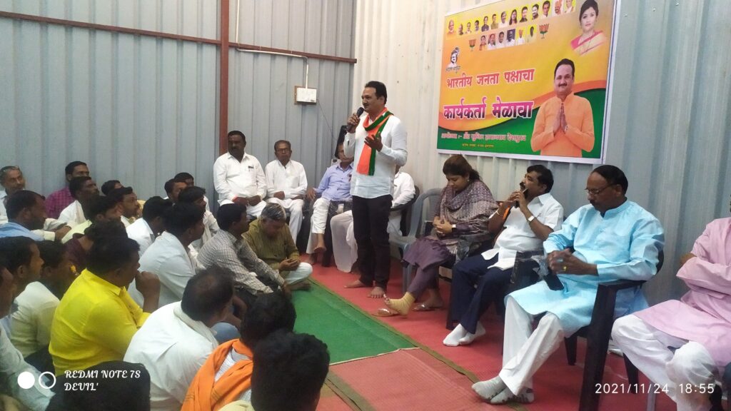 तसेच पदाधिकारी यांनी सर्कल मध्ये झालेल्या भ्रष्टाचाराचा पाढा त्यांच्या समोर मांडला तोच धागा पकडत त्यांनी कार्यकर्त्यांना आव्हान केले कि डॉ बाबासाहेब आंबेडकर यांनी आपल्याला दिलेल्या जगातील सर्वात मोठ्या अधिकाराचा वापर करून आपल्या अडीअडचणीच्या काळात उभे असणाऱ्या सुनील देशमुख यांच्या सारख्या उच्च शिक्षित तरुणाच्या माघे आपली ताकतात उभी करून मुजोर आणि भ्रष्ठ सदस्य याला धडा शिकवावा कुठल्याही दबावाला अमिषाला बळीन पडता विकासाची धृद्दृष्टी असलेल्या सुनील देशमुख यांना आपली सेवा करण्याची संधी आपण द्यावी बद्दल हा नक्की असून मतदानाची लीड वाढवण्यासाठी खऱ्याअर्थाने आपल्याला काम करायचे आहे सध्या स्थितीत राज्य सरकार हे ” आम्ही तिघे भाऊ भाऊ मिळून मिसळून खाऊ खाऊ ” अशा प्रकारे चालू असून जनतेच्या हिताचा कुठलाच निर्णय यांनी आज पर्यंत घेतलेला दिसत नाहीये. शेतकरी राजा पासून ते उच्च शिक्षित तरुण हा या महा भकास आघाडी सरकारला व त्याच्या कारभाराला वैतागलेला आहे. राज्यात कामगार सुखी नाही महिलांवर अत्याचार वाढत आहे आणि सरकार मधील मंत्री मात्र वसुली मध्ये व्यस्त आहे.