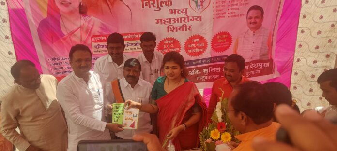 आ.सौ.श्वेताताई महाले पाटील यांच्या वाढदिवसानिमित्त भाजपा बुलडाणा तालुकाध्यक्ष ॲड.सुनिल देशमुख यांनी मासरूळ जिल्हापरिषद सर्कल मध्ये भव्य महा आरोग्य तपासणी शिबीर व सर्व आजारावरील मोफत शस्त्रक्रिया मार्गदर्शन शिबीर गुम्मी येथे आयोजित करण्या आले होते.