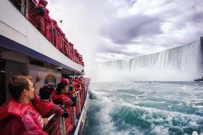 किती अतंर चालायचे आहे समजत नव्हते, पाय थकले होते पण मनं मात्र त्या फेसाळलेल्या पाण्याच्या तुषारांनी आनंदाने न्हावून निघत होते त्यामुळेच दमल्या,थकल्याचे भान नव्हते,अनेक जण बेभान पणे आनंद लुटत होते.एकीकडे नायगारा नदीच्या विशाल पात्रातून रेड निशाण कॅनडाचे आणि ब्लू निशाण लावलेले क्रुझ डौलाने चालत होते. क्रुझवरील प्रवाशांचे रेनकोटही त्या त्या देशाच्या निशाण प्रमाणे दिले जातात. काही ठिकाणी हे दोन्ही देशांचे क्रुझ एकमेकांच्या हद्दीत विना पासपोर्ट फक्त क्रुझ मध्ये बसून प्रवास करू शकतो.