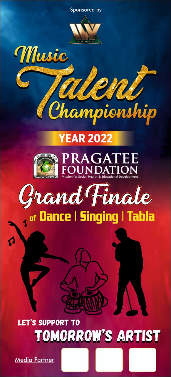 उगवत्या नव कलाकारांना गायन, संगीत आणि नृत्य क्षेत्रात कला सादर करण्यासाठी भव्य व्यासपीठ उपलब्ध व्हावे आणि म्युझिक अकॅडमीना सपोर्ट करण्याकरिता सदर म्युझिक टॅलेंट चॅम्पियनशिप स्पर्धेचे आयोजन शनिवार दिनांक 6 ऑगस्ट 2022 रोजी वाशी नवी मुंबईतील विष्णु दास भावे या सभागृहात करण्यात आले आहे.