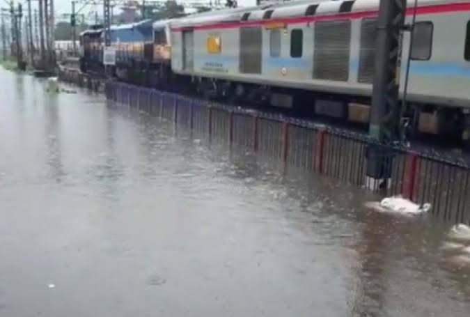 मुंबई: काल पासून कोसळणाऱ्या मुसळधार पावसामुळे मुंबईची जीवन रेखा ठप्प झाली आहे. वाशी ते कुर्ला दरम्यान हार्बर रेल्वे पूर्णपणे बंद असून मध्य रेल्वेचीही सी एस टी ते कुर्ला दरम्यान वाहतूक बंद आहे. कुर्ला स्थानकात सिग्नल यंत्रणा बंद पडल्याने रेल्वेची सेवा कोलमडली आहे. हवामान खात्याने पुढील दोन दिवस अति मुसळधार पाऊसाची शक्यता वर्तवली आहे त्यामुळे आवश्यक असेल तरच घरा बाहेर पडा असे आवाहन नागरिकांना करण्यात आले आहे.