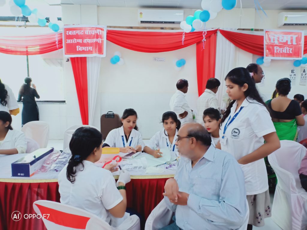 आरोग्य शिबिरात दोनशेहून अधिक लोकांनी उपस्थिती लावली आणि जवळपास तीस लोकांनी रक्तदान केले.