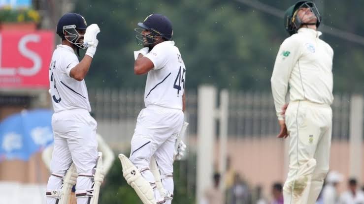 Rohit Sharma and Ajinkya Rahane steered India out of trouble after joining hands at 39 for 3. The duo added 185 runs at a brisk pace to put the pressure back on South Africa on a rain-affected Saturday in Ranchi.