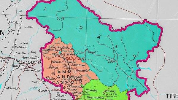 नवी दिल्ली: कलम 370 रद्द करून जम्मू आणि काश्मीर राज्यांची निर्मिती तसेच लडाख या केन्द्र शासित प्रदेशांची निर्मिती झाल्यानंतर केंद्र शासनाने शनिवारी नवीन नकाशा जारी केला. नव्याने निर्मिती करण्यात आलेल्या जम्मू-काश्मीर व लडाख यांचे नकाशे, तसेच या केंद्र शासित प्रदेशांचा समावेश असलेला भारताचा नकाशा जारी केला. लडाखच्या केंद्रशासित प्रदेशात कारगिल व लेह या दोन जिल्ह्यांचा समावेश असून, यापूर्वीच्या जम्मू व काश्मीर राज्याच्या उर्वरीत भाग जम्मू-काश्मीर या केन्द्र शासित प्रदेशात समाविष्ट आहे.