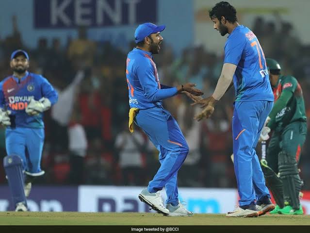 Nagpur: India won the crucial series-decider in Nagpur in dramatic fashion as Deepak Chahar picked up a hat-trick and career best figures in the third T20I against Bangladesh. It was anything but smooth sailing for India, with Bangladesh at one point looking set for a comfortable win, but Deepak Chahar bowled a fantastic spell to give India the win. After Shreyas Iyer and KL Rahul scored classy half-centuries to give India a total of 174, Chahar gave India the early breakthrough, taking two wickets in two balls in his first over of the game. But young opener Mohammad Naim and Mohammad Mithun put on a 98-run stand, with Naim scoring a magnificent 81. But Deepak Chahar came back to remove Mohammad Mithun, before Shivam Dube picked up three wickets to put India back in control. Chahar then picked up a wicket on the last ball of his third over, and then, bowling the final over of the innings, he got two in the first two deliveries to become the first Indian to bag a hat-trick in T20Is. The seamer finished with incredible figures of 6-7.