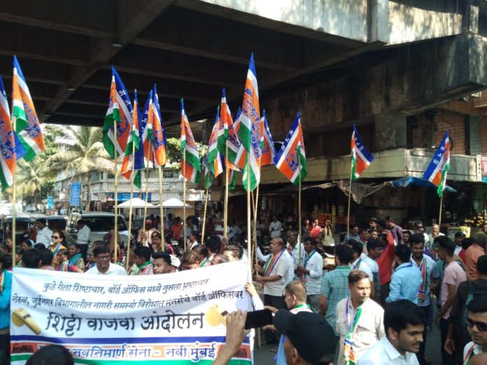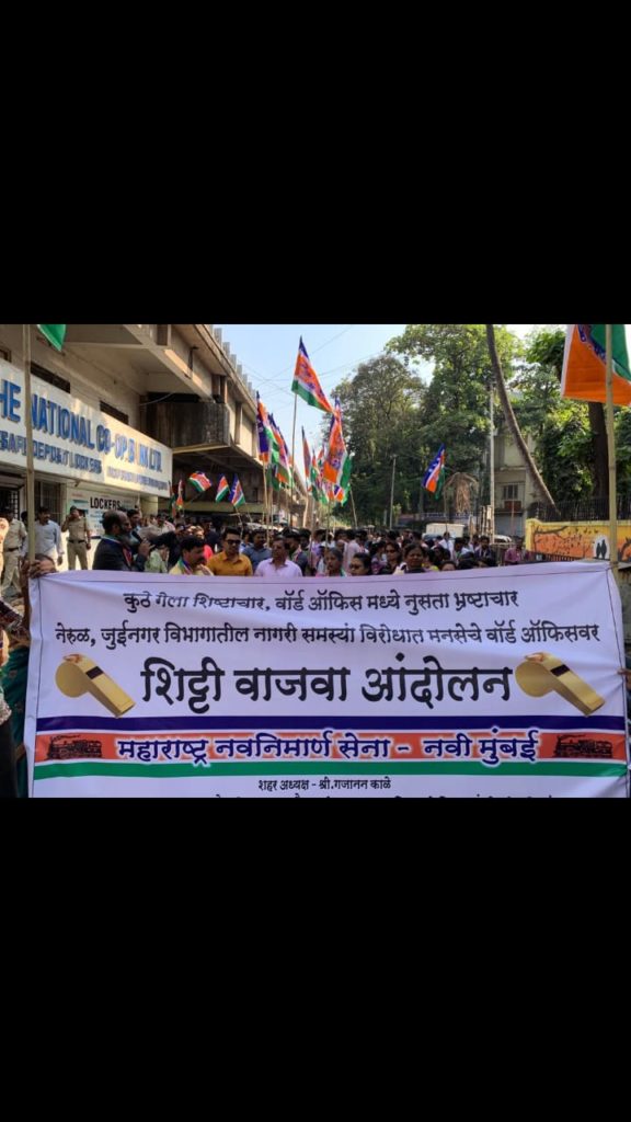 नवी मुंबई: नवी मुंबईतील नेरुळ-जुईनगर विभागातील नागरिकांना भेडसावणाऱ्या विविध समस्यांबद्दल मनसेच्या स्थानिक पदाधिकाऱ्यांनी शहर अध्यक्ष गजानन काळे यांच्या मार्गदर्शनाखाली नेरुळ येथील मनपा विभाग कार्यालयावर धडक दिली. यावेळी मोठ्या संख्येने मनसैनिक व नागरिक उपस्थित होते. मनसे पदाधिकाऱ्यांनी याप्रसंगी छायाचित्रांसहित नागरी समस्यांचा पाढाच विभाग अधिकारी संजय तायडे यांच्यासमोर वाचला. यावेळी विभाग अधिकाऱ्यांविरोधात “या अधिकाऱ्यांचे करायचे काय