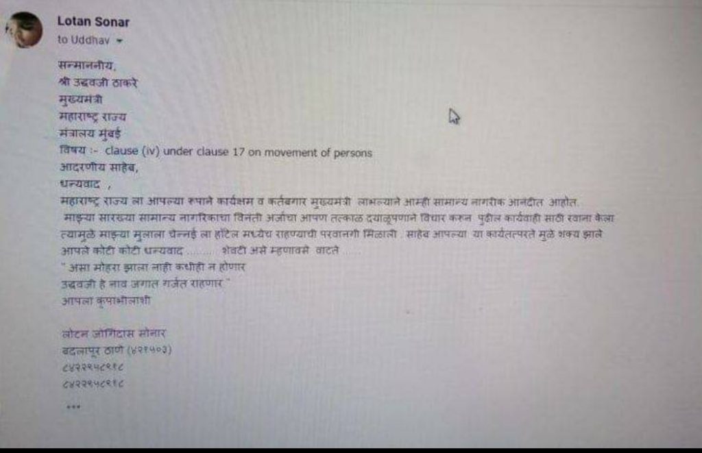 अखेरीस लोटन यांनी थेट मुख्यमंत्र्यांना पत्र लिहून मदतीची मागणी केली.