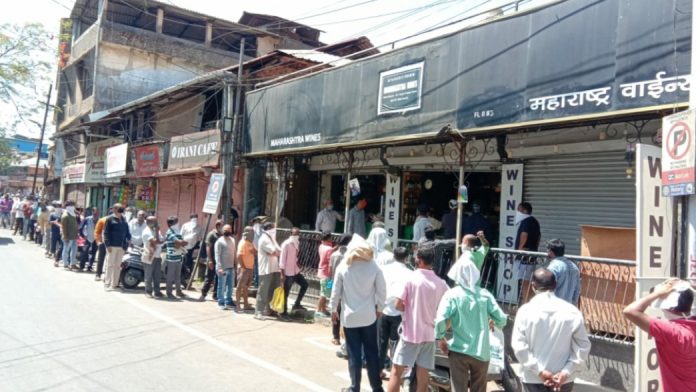 पुणे जिल्हाधिकारी यांच्या आदेशान्वये लोणावळा शहरातील दारुच्या दुकानांसह इतर सर्व दुकाने मंगळवारी सकाळी उघडण्यात आली होती. सर्व बाजारपेठ उघडल्याने नागरिकांनी देखील बाजारात मोठी गर्दी केल्याने सर्व रस्ते गर्दीने फुलले होते. फिजिकल डिस्टन्सिंगचे नियम पायदळी तुडवत नागरिक फिरू लागल्याने शहरातील जीवनावश्यक वस्तू वगळता इतर दुकाने बंद करण्यात आली. त्यानंतर बाजारातील गर्दी कमी झाली. दुसरीकडे दीड महिन्याच्या प्रतीक्षेनंतर दारुची दुकाने उघडल्याने दारु खरेदीसाठी नागरिकांनी लांबच लांब रांगा लावल्या होत्या. शंभर ते दोनशे मीटरपर्यत या रांगा लागल्या होत्या. दुकानासमोरील काही भाग वगळता सर्वत्र फिजिकल डिस्टन्सिंगचा फज्जा उडाला होता.