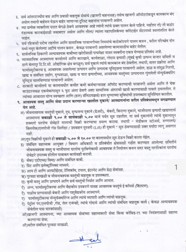 या दहादिवसाच्या लॉक डाऊन काळात केवळ अत्यावश्यक सेवा देणारे दुकाने व कार्यालये सुरु राहणार आहेत. सर्व प्रकारच्या खाजगी वाहनावर बंदी घालण्यात आली आहे. कामाशिवाय बाहेर फिरणाऱ्यावर कायदेशीर कारवाई करण्यात येणार आहे.