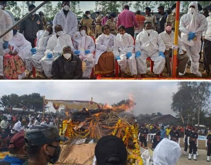 या ठिकाणी पालकमंत्री सतेज पाटील,ग्रामविकास मंत्री हसन मुश्रीफ, खासदार संजय मंडलिक, अमरजीत राजा घाटगे, माजी आमदार संजय घाटगे, जिल्हाधिकारी दौलत देसाई यांनी श्रद्धांजली वाहिली. लष्कर आणि पोलिसांनी बंदुकीच्या फैरी झाडून मानवंदना दिली. यावेळी भारत माता की जय….चा जयघोष झाला. शहिद जवान ऋषिकेश जोंधळे यांच्यावर शासकीय इतमामात अंत्यसंस्कार करण्यात आले. कोरोनाच्या पार्श्वभूमीवर अंत्यसंस्काराच्या ठिकाणी खबरदारी घेतली होती.