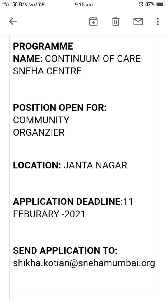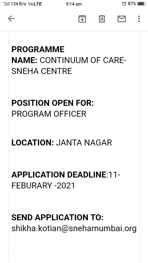 Job: Program Officer and Community Organizer February 8, 2021 शेअर करा Facebook Twitter Google+ WhatsApp Email