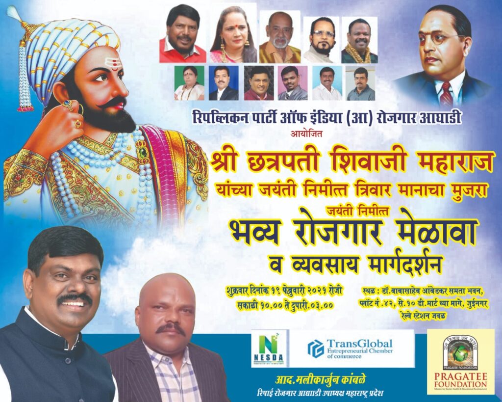 रिपब्लिकन पार्टी आँफ इंडिया रोजगार आघाडी नवीमुंबई च्या वतीने शिवजयंती निम्मीत्त रोजगार मेळाव्याचे आयोजन करण्यात आले होते. रिपाई रोजगार आघाडीचे अध्यक्ष चंद्रकांतदादा जगताप यांच्या हस्ते मेळाव्याचे उद्घाटन करण्यात आले.