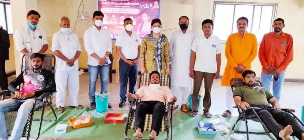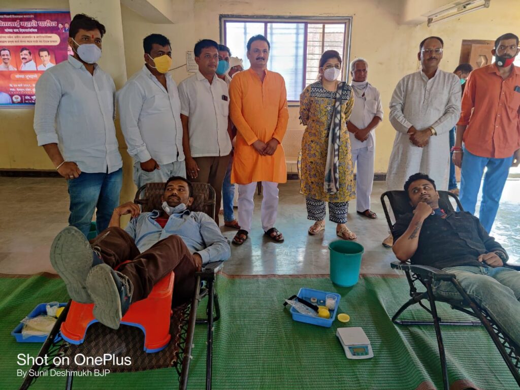 आ.श्वेताताई महाले पाटील यांच्या नेतृत्वात कोरोना च्या पार्श्वभूमीवर बुलडाणा तालुका भारतीय जनता पार्टी व युवा मोर्चा यांच्या वतीने महाराष्ट्र दिन व कामगार दिनाच्या निमित्त भव्य रक्तदान शिबिराचे आयोजन करण्यात आले होते.